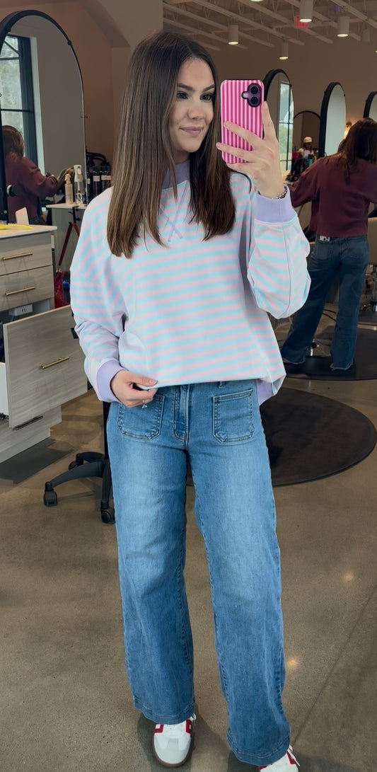 Mock Neck Stripped Sweatshirt